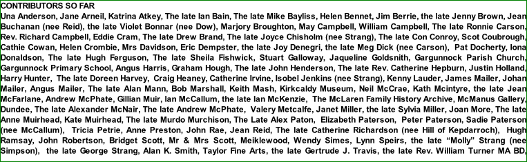 The late Miss Sylvia Miller of Provost Park Cottage provided much information, support and encouragement both for the archive and also for the local magazine while I was producing it. She had always been around during my lifetime, a weel-